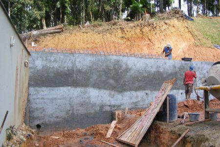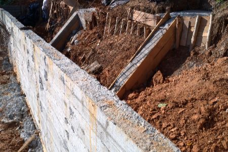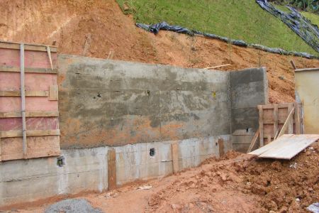 Nossos Muros de Contenção são construídos em concreto armado, totalmente monolítico.